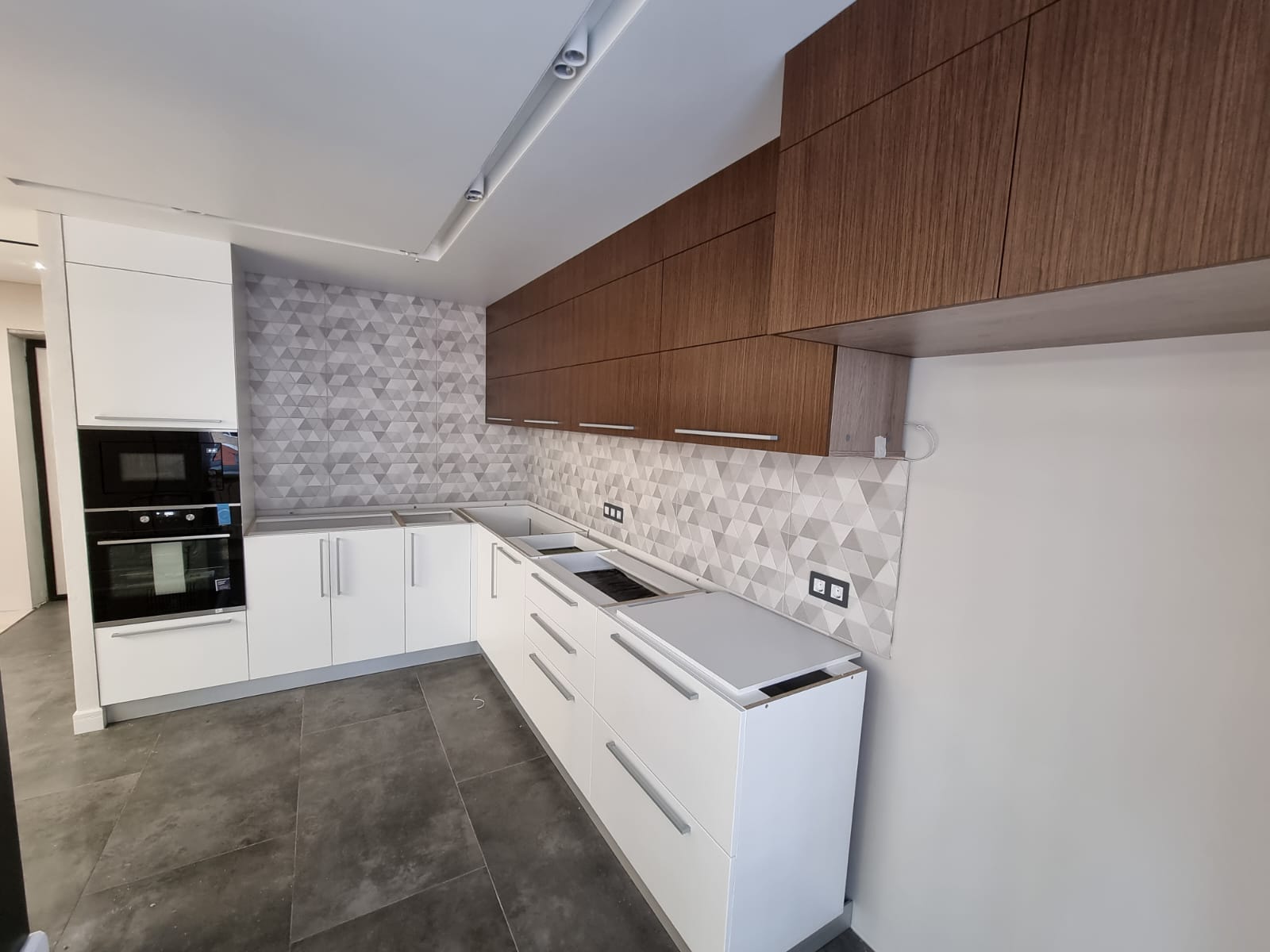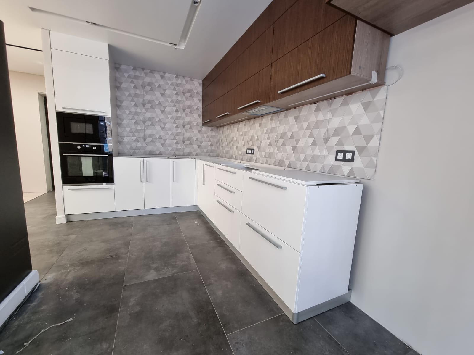 Кухня изготовлена в двух цветах, что отражает последние тренды, придаёт изюминку интерьеру и демонстрирует ваш неординарный вкус. Наполненность и модели используемых шкафов тщательно продуманы, чтобы вы смогли в безупречном порядке разместить все кухонные принадлежности и запасы продуктов.