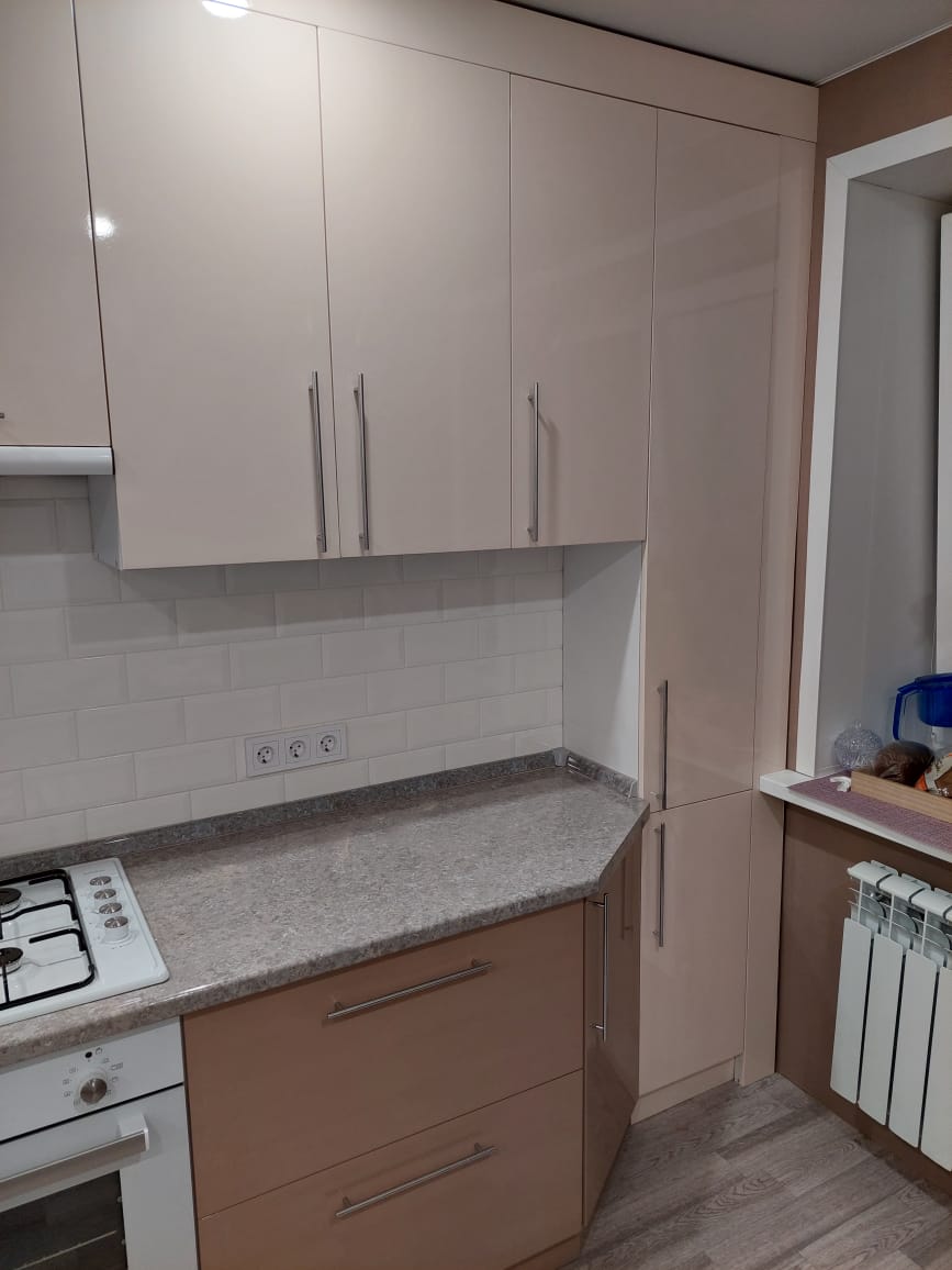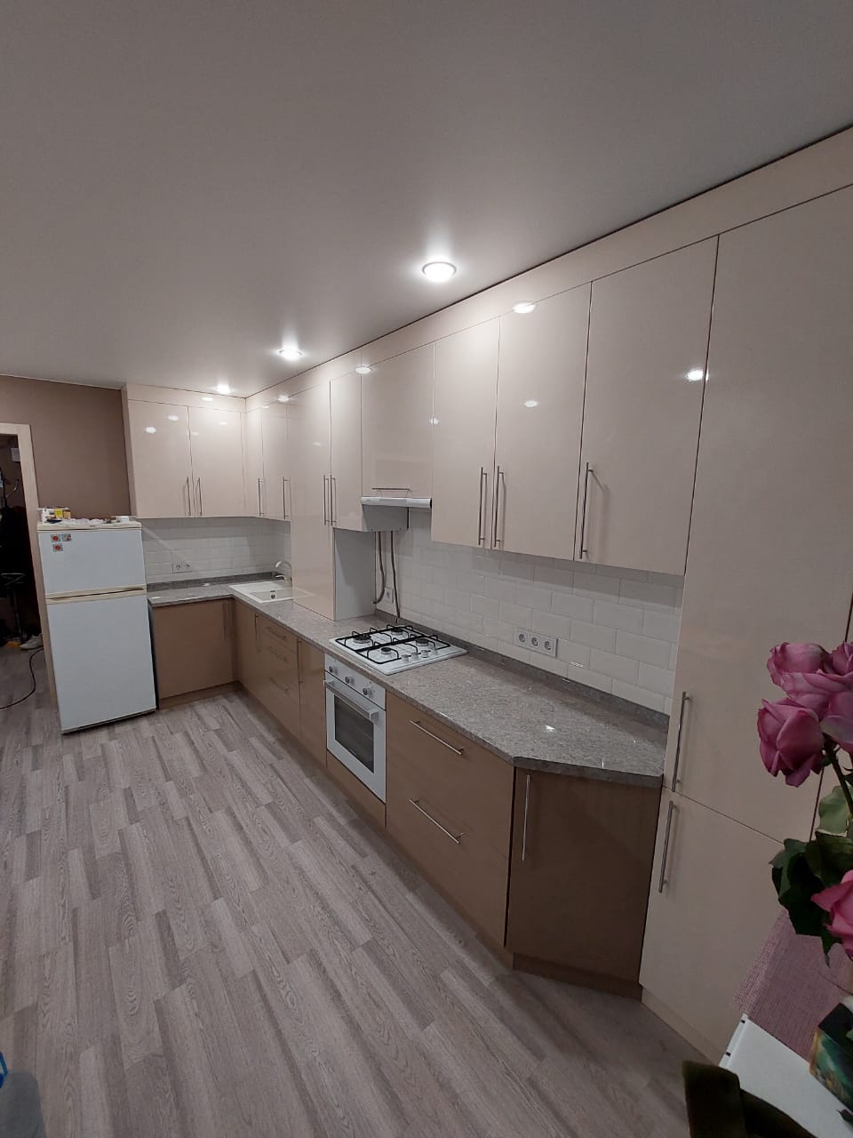 Кухня «Гармония» Г-образной формы — элегантный и многофункциональный гарнитур, разработанный с учетом встроенной бытовой техники. Комплектация полностью удовлетворит потребности хозяев дома. В наличии имеются вместительные шкафчики, модули под раковину, вытяжку, посуду, плиту с духовкой, места для кухонных принадлежностей. Цветовая гамма и дизайн подойдут для оформления интерьеров в стилях минимализм, классика, хай-тек.