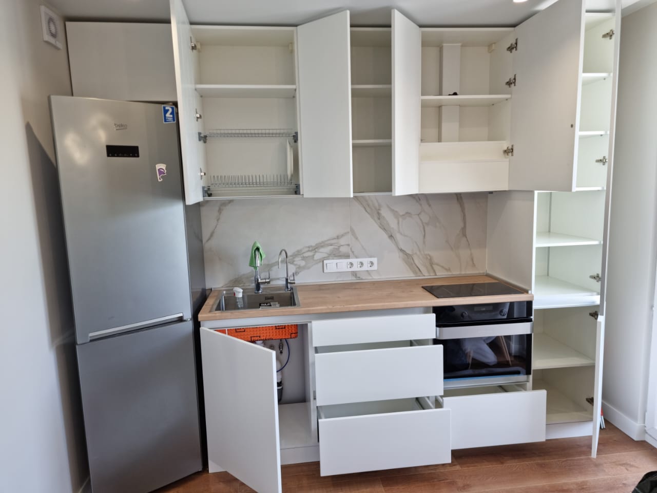 Кухню Мидл на заказ готовы изготовить специалисты нашей компании, по индивидуальному проекту, учитывающему как размеры помещения, так и все требования/пожелания Заказчика. Замерщика на объект мы направим бесплатно, готовую мебель доставим по вашему адресу и окажем помощь в профессиональной сборке.