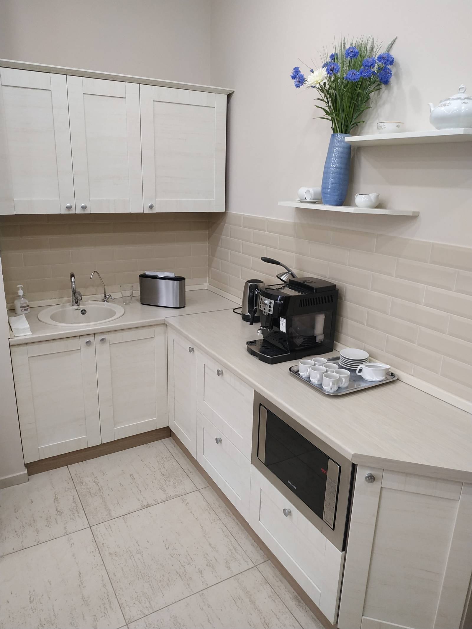 Кухня в офисе — это не только место для приготовления и употребления пищи. Это и зона отдыха в офисном пространстве, которая должна быть непременно уютной, удобной и красивой.
