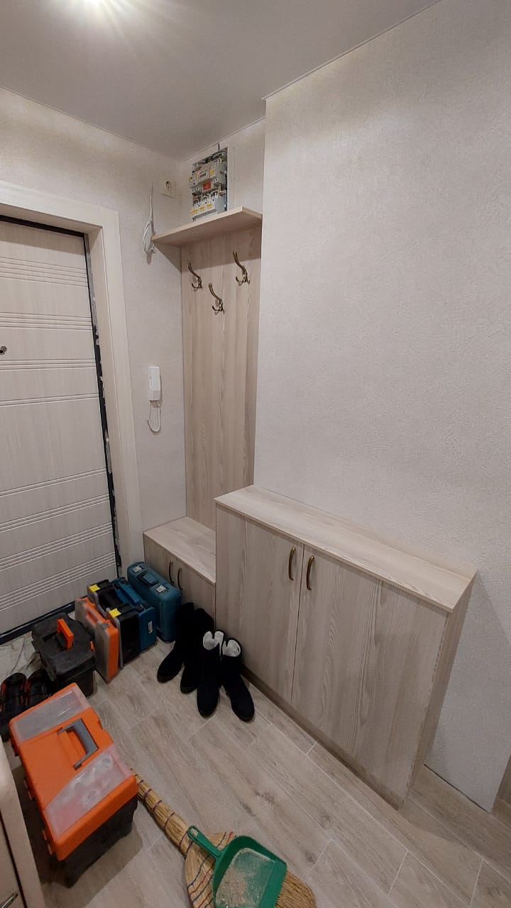 Для монтажа можно выбрать любой свободный угол, лучше ближе к выходу из квартиры. Особенность материала ЛДСП, из которого выполнен комплект – невосприимчивость к температурным перепадам и влажности, износу и нагрузкам. Деревянный декор в этом случае светлый и лаконичный, не имеет дизайнерских излишеств и ненужных деталей. Можно удачно сочетать такой входной элемент с любым стилем в квартире: лофт, минимализм, прованс, классический или скандинавский.