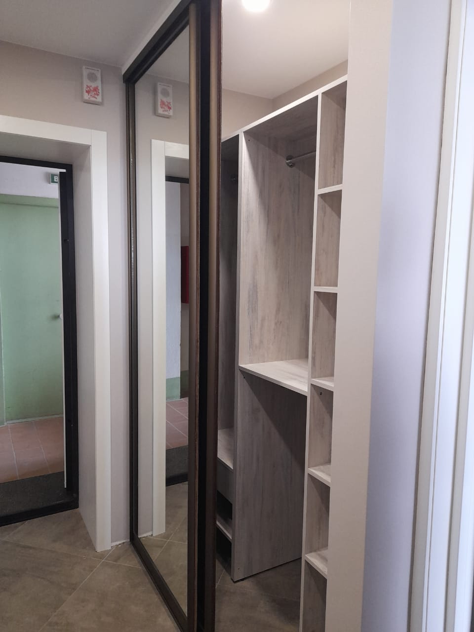 Шкаф-купе – это идеальное решение для малогабаритных квартир. Несмотря на то, что конструкция весьма компактная, в ней можно хранить большое количество одежды для разных сезонов. Корпус изготовлен из высокопрочного ЛДСП, поэтому ему не страшны температурные перепады и воздействие влаги. Фасады декорированы зеркальными вставками, которые покрыты специальной пленкой, повышающей износостойкость конструкции.